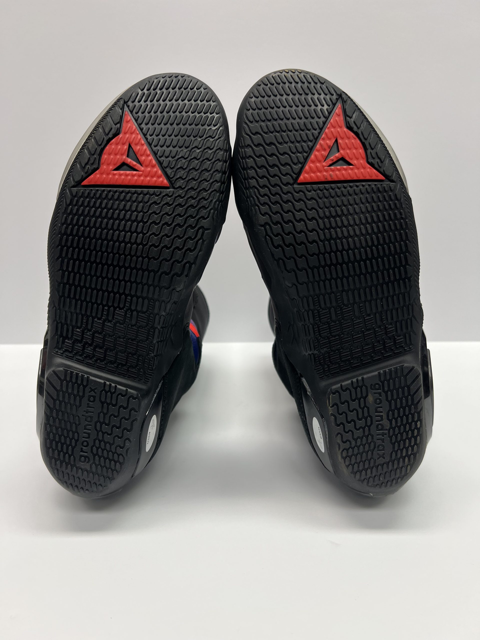 Dainese and Alpinestars resole their racing boots for riders to maximize their use. The boots being offered hear are fantastic examples of this, meaning the have been worn many times, and with this example resoled and ready for further racing action.