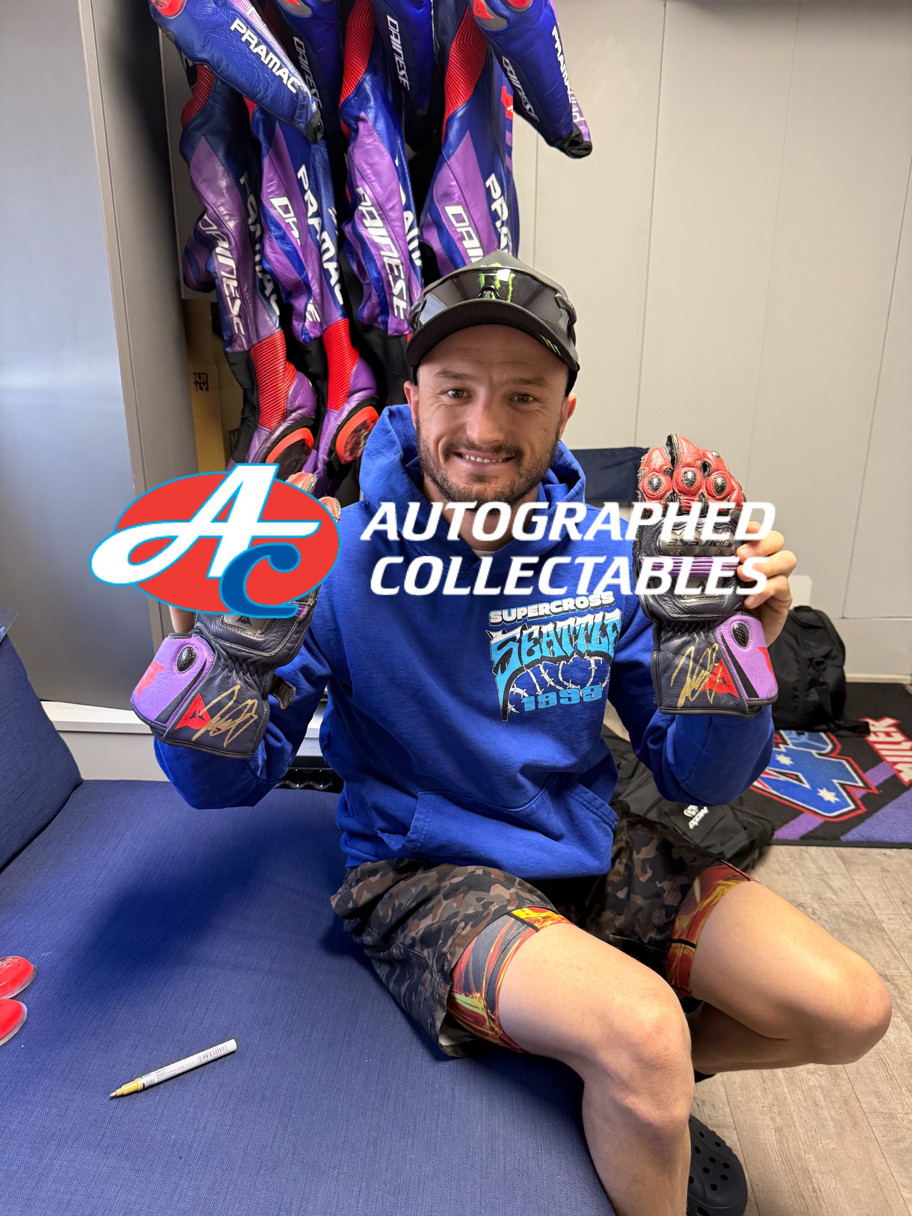 In 2025 Miller moved back to the Pramac Racing team, this time onboard the Yamaha to race alongside Miguel Oliveira. These gloves have been personally signed by Jack and were obtained directly from him, and signed by him in Valencia, Spain during the last round of the 2025 MotoGP World Championship.